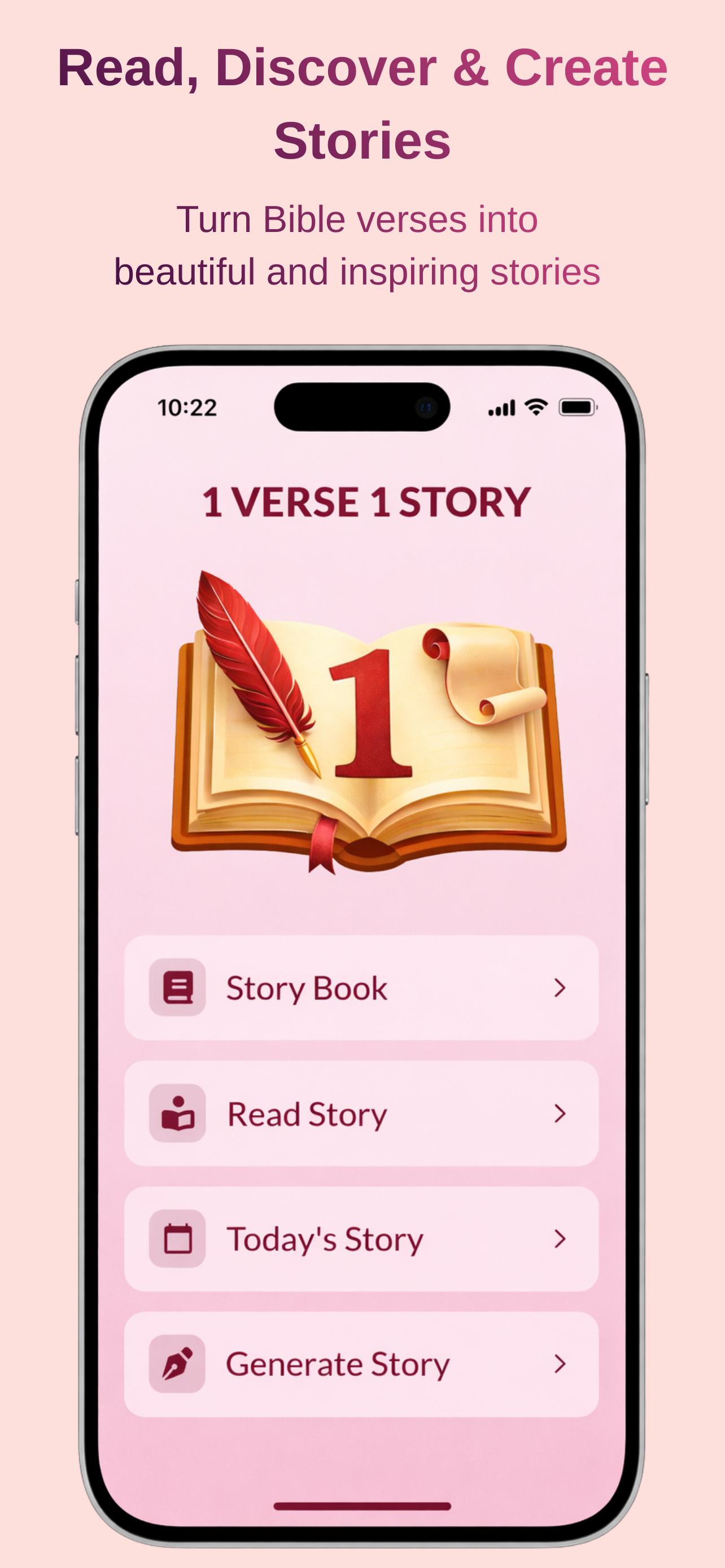 1Verse1Story uses advanced AI to transform any Bible verse into an engaging, contextual story that helps you understand and connect with Scripture on a deeper level. Perfect for daily devotions, Bible study, or sharing faith with others.