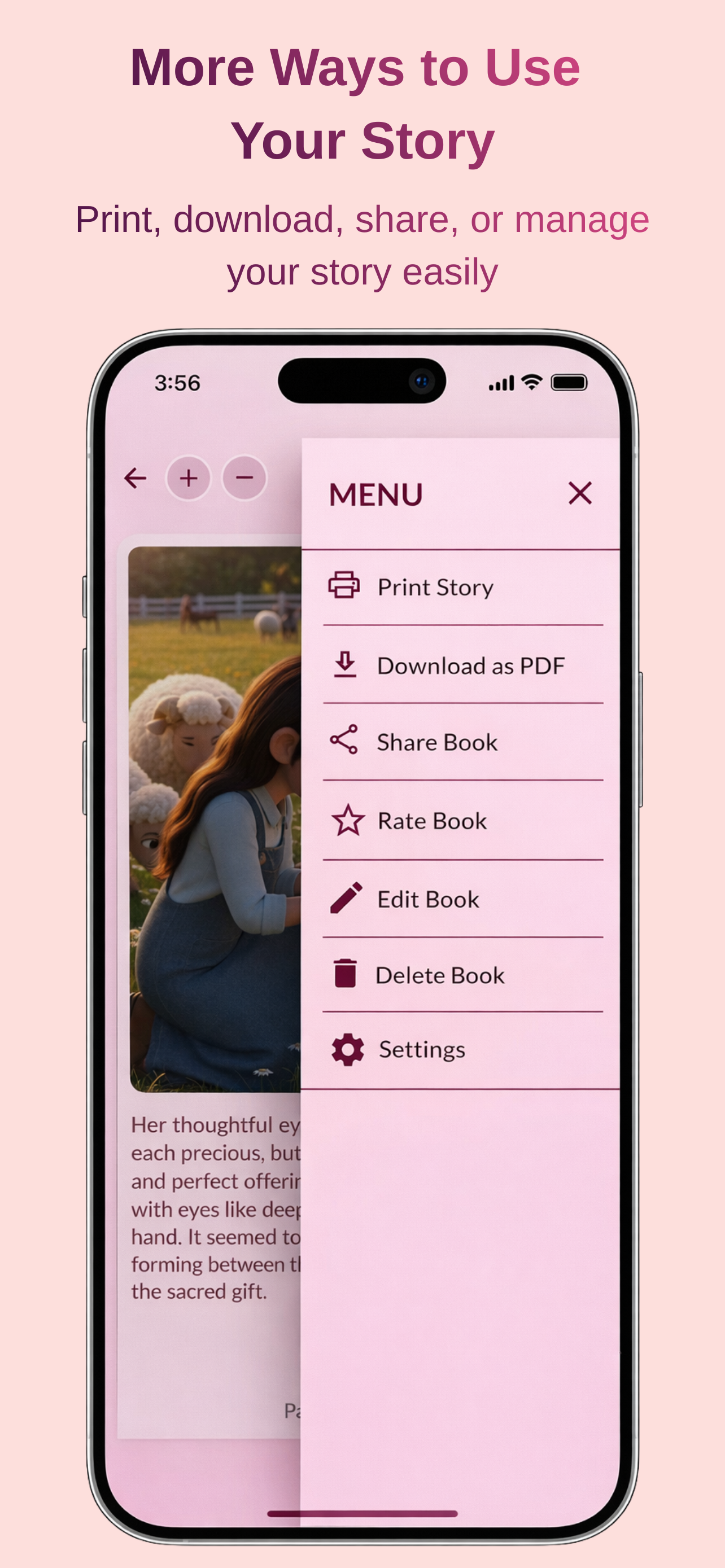 Enjoy your personalized story, save it to your favorites, and share the inspiration with friends, family, or your faith community.