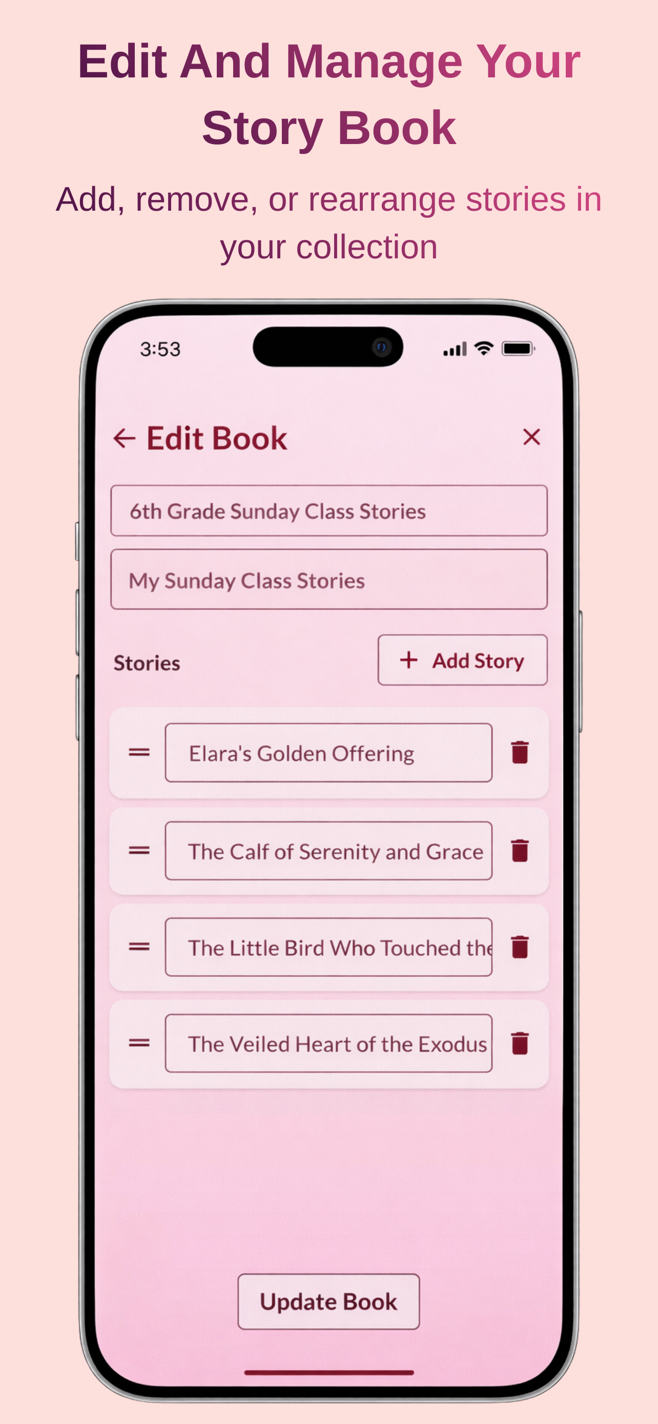 Bookmark your favorite stories and verses for quick access anytime, anywhere.