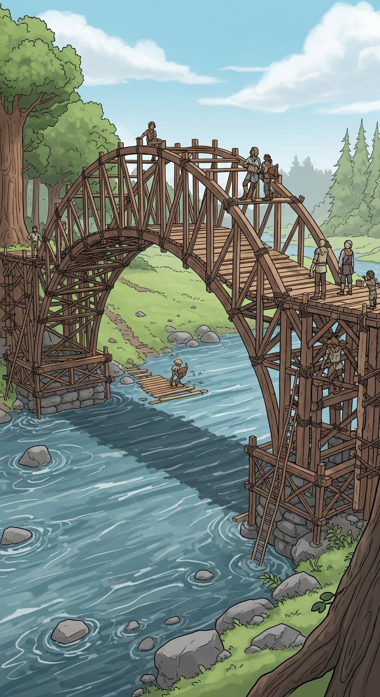 It was Elara who, with calm focus, presented her carefully calculated plans. Using her deep understanding of structure and materials, she organized the villagers, meticulously guiding them to construct a strong, arching bridge that seamlessly spanned the river, bringing immense relief and resounding cheers from the grateful community.